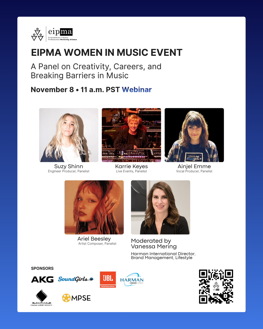 In their webinar “Women in Music,” EIPMA brought together four women whose careers reflect very different corners of the industry—Ainjel Emme, Ariel Beasley (Tender Misfit), Suzy Shinn, and Karrie Keyes—for a candid, often vulnerable conversation about identity, craft, and finding your place in a field that rarely hands anyone a roadmap.