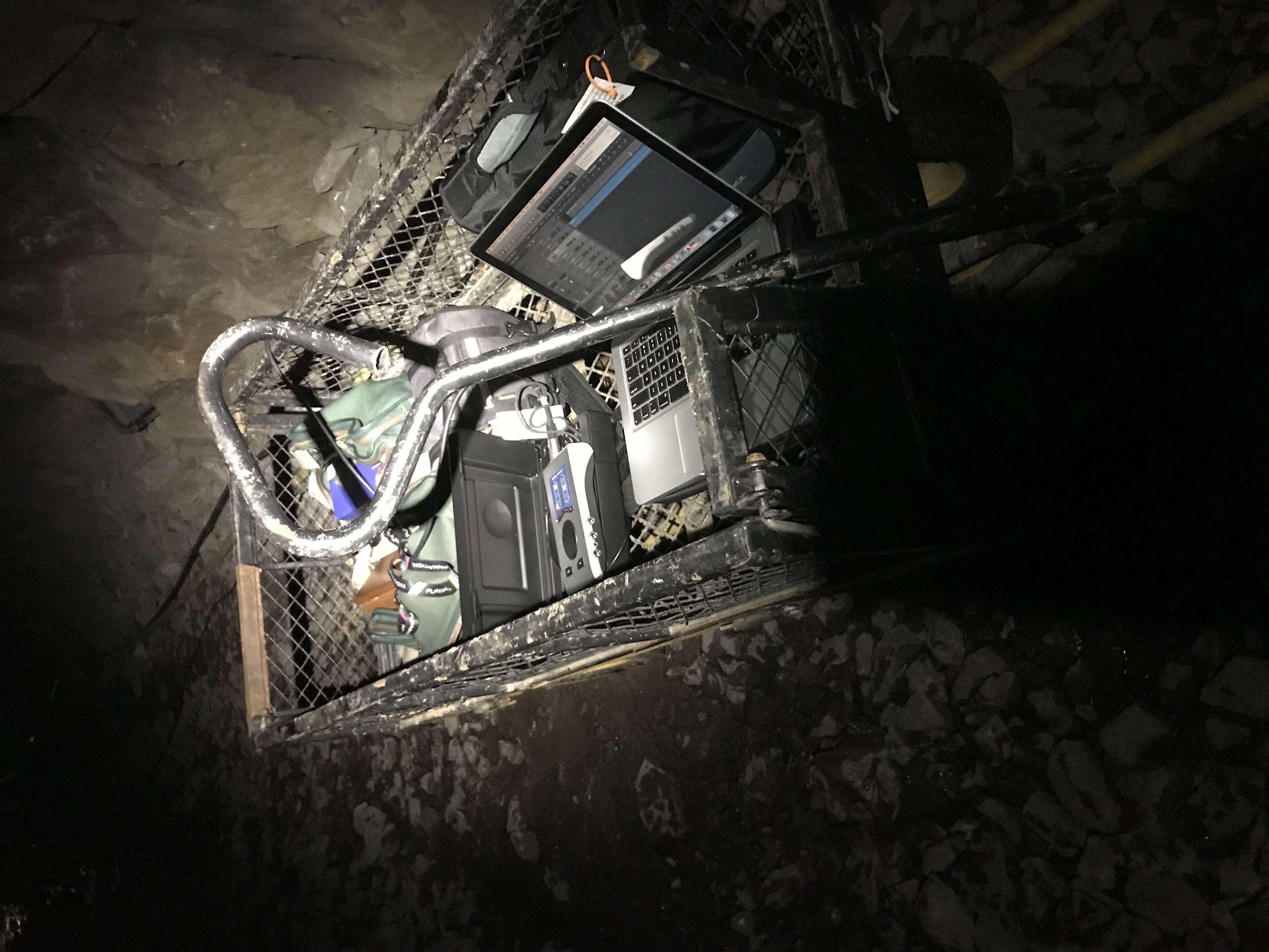 My second trip to The Adventure Mine was a bit wetter. Fortunately, I had been careful to not bring moisture-sensitive equipment as working in these kinds of environments can be both damp and rough. The company was also kind enough to lend me an old metal wagon that I stored most of my recording equipment into pull around the many chambers. The gear that I brought with me was a laptop running Logic, an RME Babyface Pro interface, and an Earthworks condenser microphone. I also included a Zoom H5 with a mid-side capsule for any ambient recording that I might have time for. To generate the impulses, I used balloons and a pin to pop them. I decided upon this method because the mine was so far from any power source, which meant I could not generate a sine sweep from a speaker for my impulses. I used the entire pack of 25 balloons, and the whole recording process took nearly five hours, but it was well worth the physical and mental exhaustion.