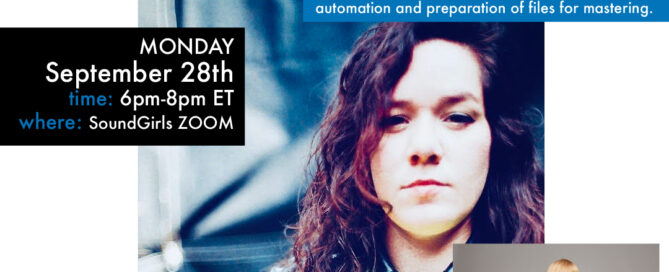 Join SoundGirls & Female Frequency for a Mixing Webinar with Rosana Cabán. Moderated by Vanessa Silberman. Learn helpful tips about mixing, plugins, panning, automation and preparation of files for mastering. Monday, September 28th 6 pm-8 pm EST Register Here Rosana Cabán is a Puerto Rican-born, Brooklyn-based artist and music producer. As the drummer of the … Continue reading Mixing Webinar with Rosana Cabán