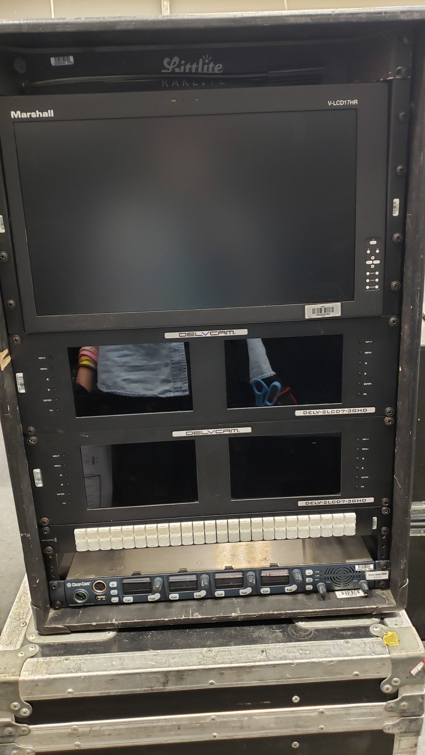 Once most of your racks and bundles are built, it’s time to move on to testing! Basically, this will involve setting up a mock layout of your show’s ampland in your prep bay, then running out all your bundles between ampland, Front of House, and the other various rack locations. Simultaneously, your A1 will likely be setting up a mock-up of the mix position, both building FOH racks and setting up the basic console file. Just about everything in your bay should be tested before being brought to the theatre in as close to “show conditions” as you can get it. So, for example, to test the conductor camera, you will plug it in near your mock band area, run the bundle that goes between it and ampland, run out any other bundles out from ampland that carry the conductor image to its various destinations, then plug in every video monitor to make sure you see the image. To keep things neat and clear, a common trick when testing cameras is to stick a post-it in front of the lens labeled with what the shot should be, that way when you have 4 monitors all next to each other you can easily diagnose which camera is “MD” vs “FOH IR” vs “LADDER 3” etc. Additionally, all wired inputs, band mics, monitor mixers such as Avioms, wired and wireless com, and program feed sends will be tested, plus any other equipment that is pertinent to your show’s design.