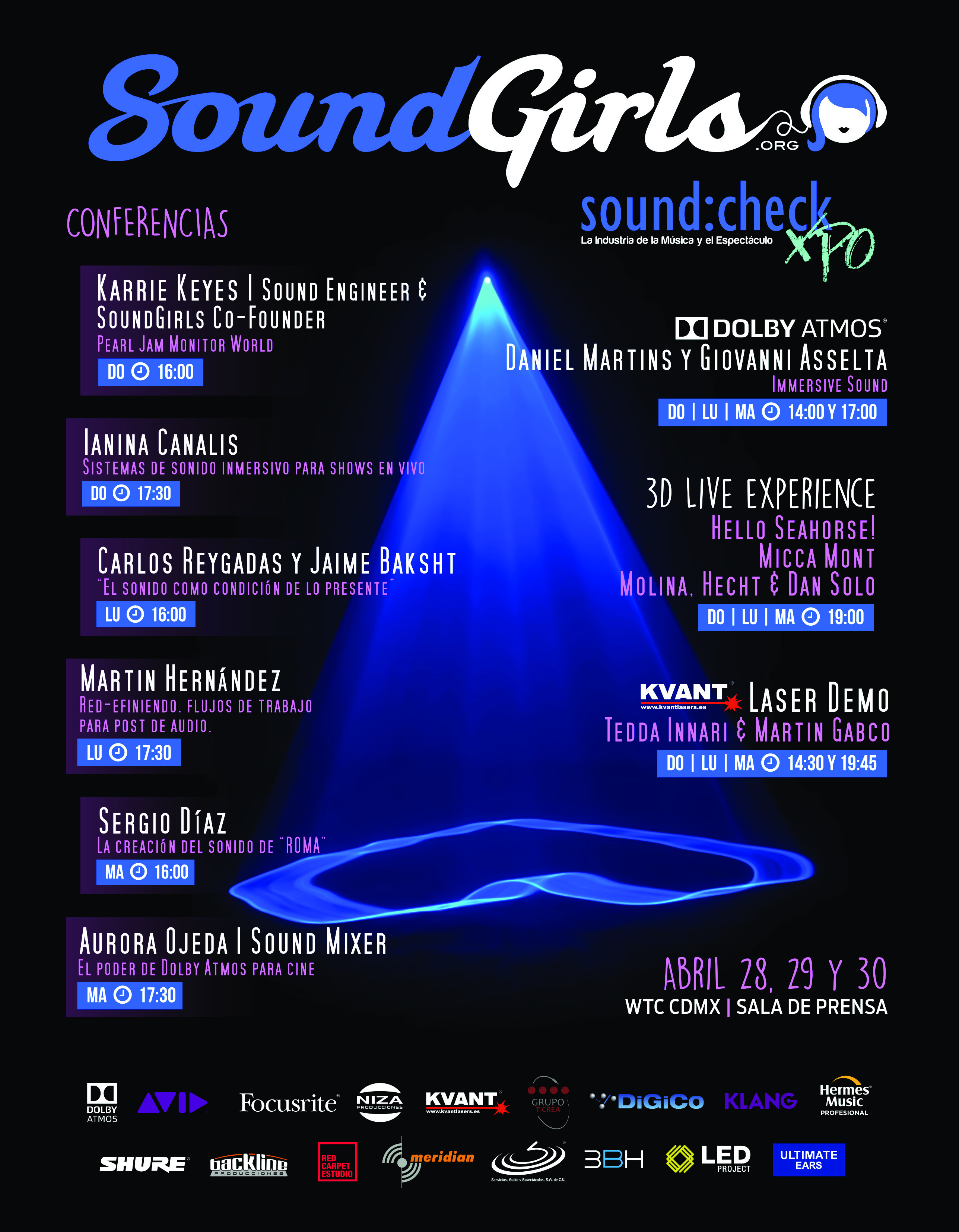 In addition, Carolina is co-founder of the 3BH company with whom she develops integration projects for the audiovisual area in LATAM. After an outstanding professional career, in 2016 Carolina began representing the Soundgirls.org organization in Mexico with the aim of supporting women in the middle of the show.