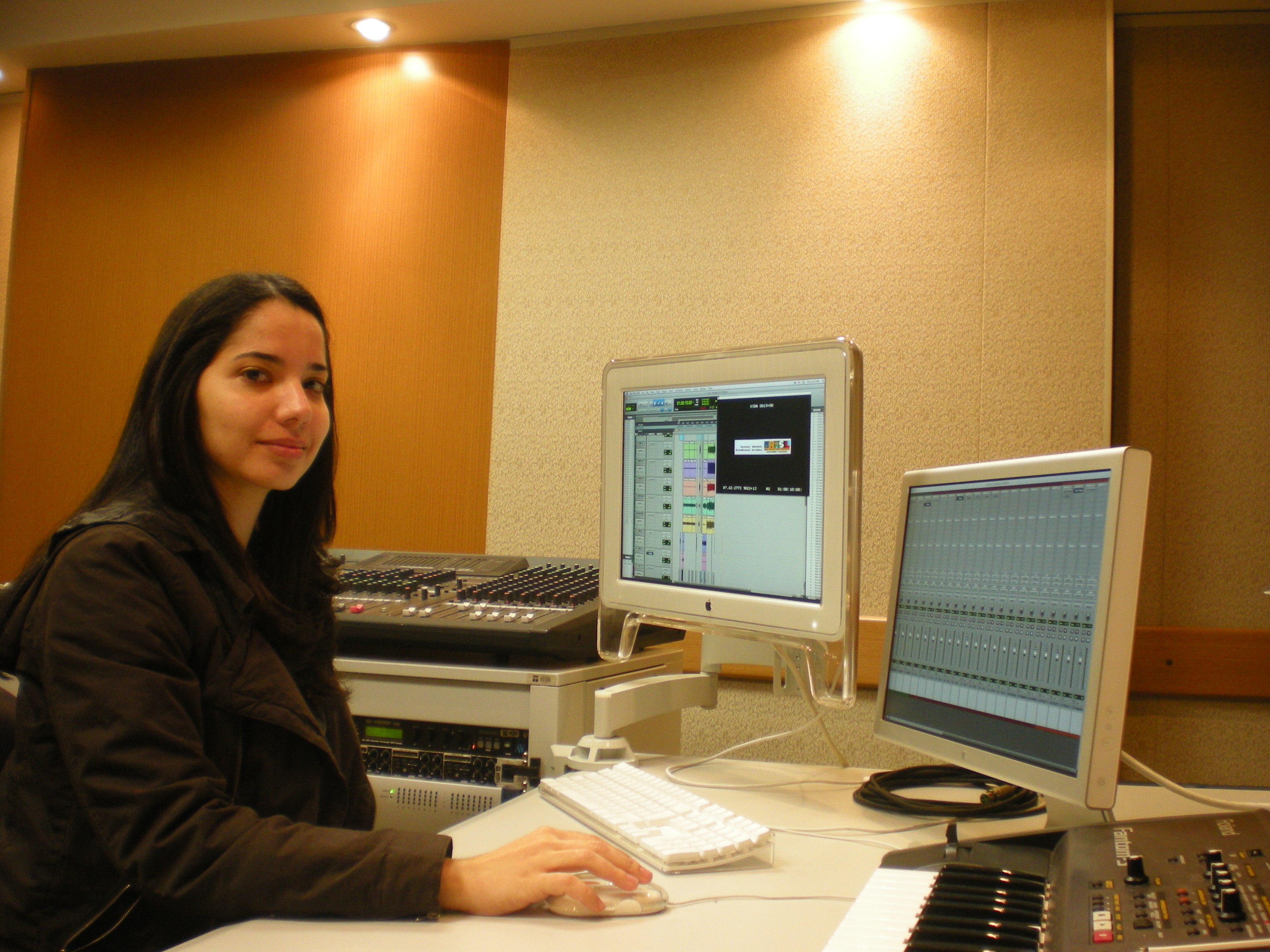 Florencia Saravia-Akamine has over 20 years dedicated exclusively to audio, whether in the studio or live. Today, she centered her activities in the areas of “live sound” and recording, editing and mixing for broadcasting. (This has changed through the years and will probably keep on changing everyday. 🙂