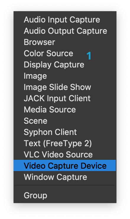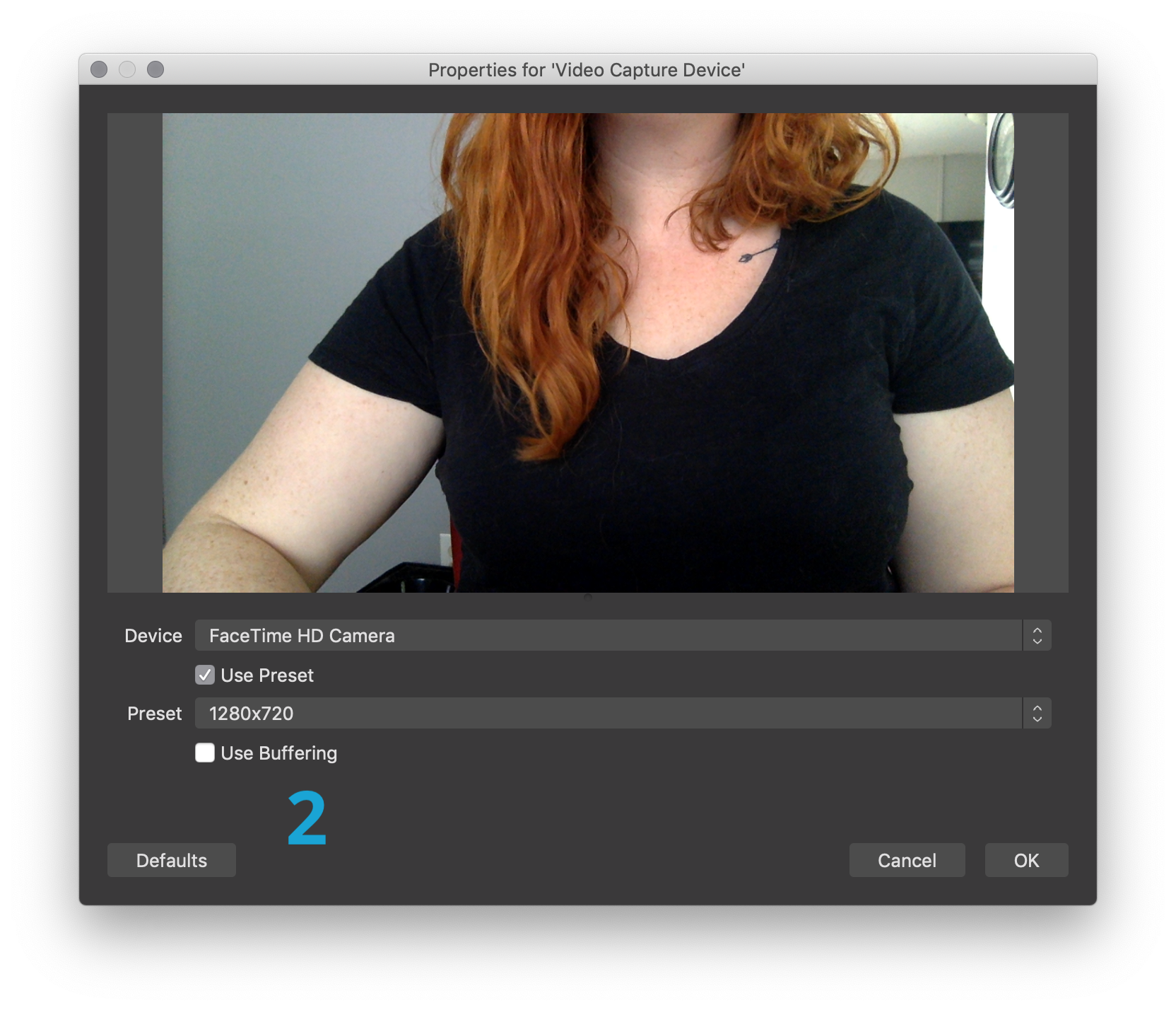 Create Scene 2. Select the Audio Source from the first scene and paste it into your Sources for Scene 2. Add a different video source – your camera. This can be your built-in FaceTime camera or any webcam. Resize it.
